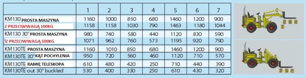 | E. SZEROKOŚĆ ŁYŻKI | 1000/1270 mm |